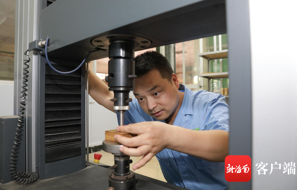 工作人員在做木材硬度試驗。記者 李昊 攝