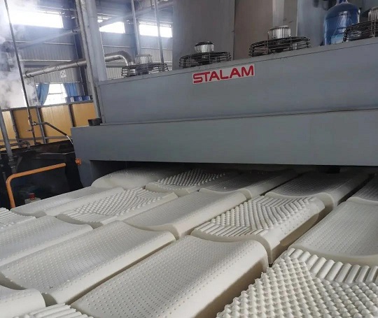 愛德福公司乳膠枕頭生產線完成自動化改造,產能增幅達32%。吳鵬 攝
