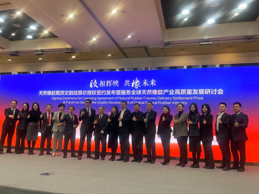 1月15日,上海期貨交易所與大阪交易所在上海聯合舉辦天然橡膠期貨交割結算價授權簽約發布暨服務全球天然橡膠產業高質量發展研討會。