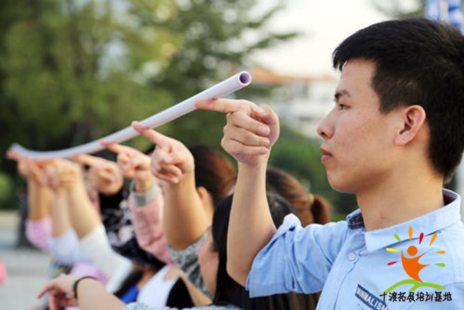 拓展訓練項目,考察團隊是否同心協力的去體驗。在所有學員手指上的同心桿將按照
